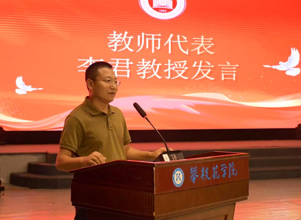 教师代表李君强调大家需要做到“三要”。如今就业形势严峻,他借具体例子呼吁学生们要努力学习,树立远大目标,做好人生规划,珍惜大学时光;要重视思想健康、心理健康、身体健康,树立爱国思想,用挫折磨炼意志、强大心理,加强锻炼,强健体魄;要广交益友,积极参与学校社团活动,提升综合素质。李君代表今年会官方网站全体教师向同学们表态,一定勤奋工作、关爱同学,希望大家不负韶华,收获精彩。