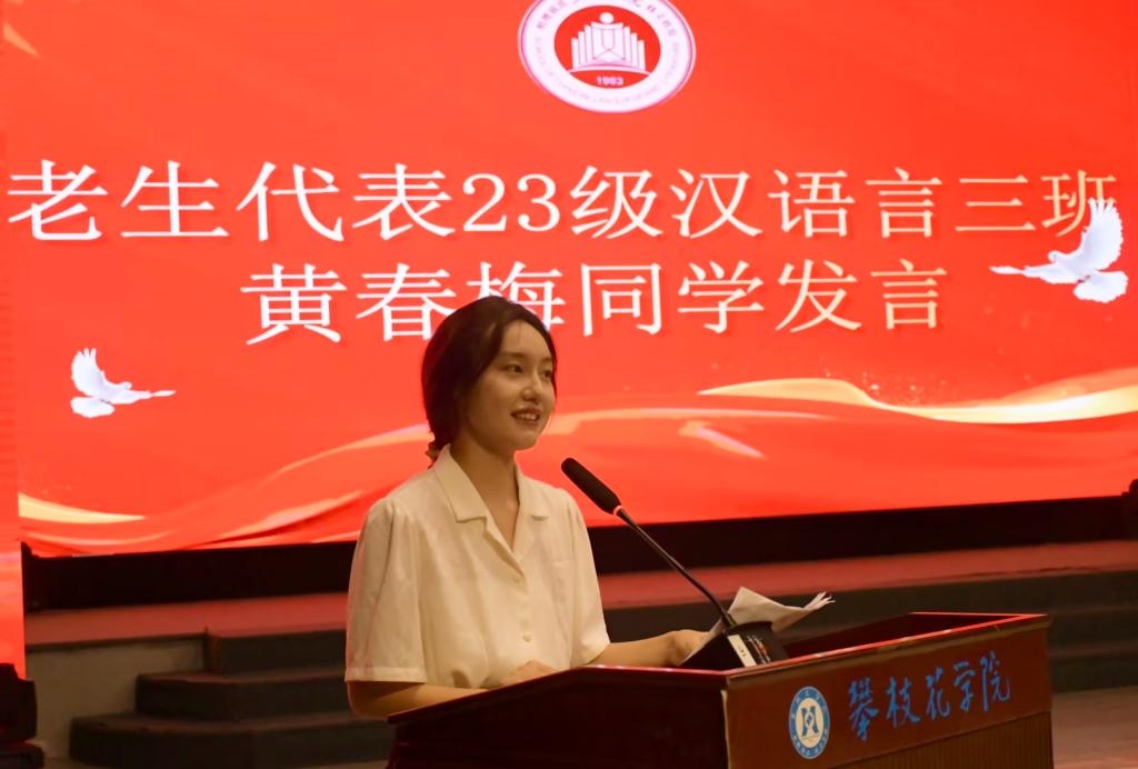优秀校友秦瑶作代表发言,分享自身感悟。她对学院的邀请、恩师的教育、学校的培养表示衷心的感谢,指出文学具有不可替代的意义,寄语新生们珍惜大学时光,勇敢追梦,不惧挑战,不断探索;积极向上,展现自我风采;学会感恩和回馈,奉献社会,建设国家。祝福新生学业有成,梦想成真;老师身体健康,桃李天下;学院前程似锦,再创辉煌;学校砥砺前行,芳华依旧。