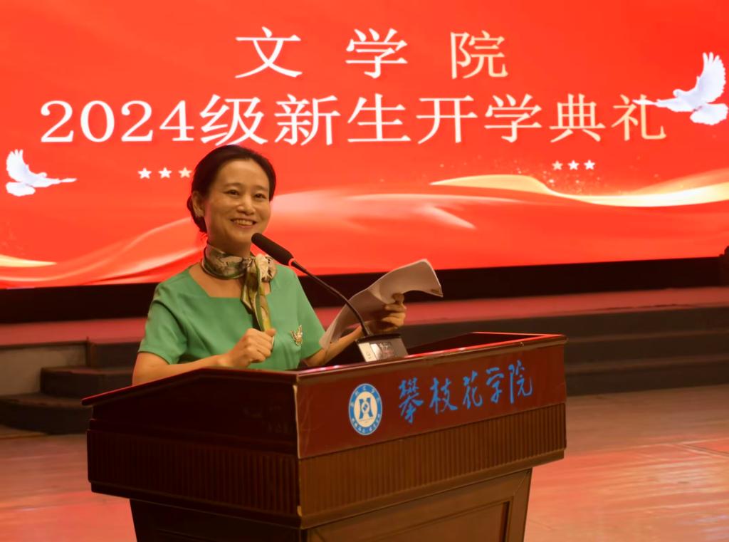 最后,周莹向大家转达今年会官方网站院长曹利华的亲切问候与诚挚祝福,祝愿新生们能够幸福充实地过好大学生活的每一天,成长为阳光健康美丽的文院学子。