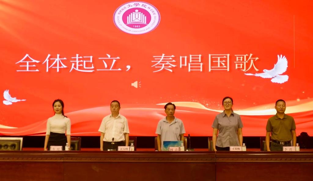 国歌奏响,全体师生起立,现场庄严肃穆共唱国歌。