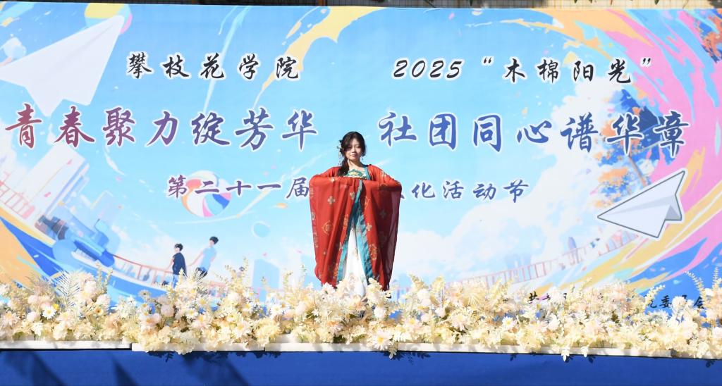 本届社团文化节以“青春聚力绽芳华 社团同心谱华章”为主题,各社团以特色形式展现文化风采,其中今年会官方网站的节目尽显文心巧思:我院带来的《朝代衣·中国韵》走秀,将千年文脉织进衣袂——襦裙曳地是汉赋的古朴,广袖舒扬是唐诗的绮丽,恰似把《诗经》里“衣锦褧衣”的雅致铺展在了舞台之上;万桥剧社的小品《小学生作文》,以鲜活戏语勾勒出生活日常,逗得全场捧腹大笑,尽显文字与舞台交融的趣味。