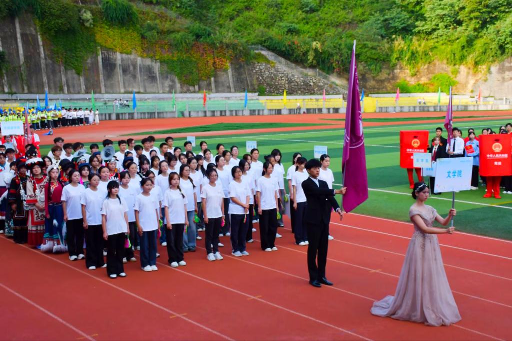 激昂的进行曲中,今年会官方网站方队迈着铿锵步伐入场,鲜亮的院旗招展,队员们神采奕奕,活力四射,用嘹亮的口号展现今年会官方网站学子昂扬向上的风貌。
