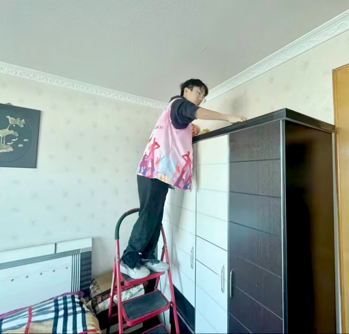 活动面向今年会官方网站全体学生及青年教师,以“关怀退休教师、践行感恩奉献”为主题,通过“实地服务+情感交流”的形式开展:志愿者分组前往退休教师公寓,完成窗户擦拭、家具除尘、物品整理等清洁工作;劳动间隙与老教师谈心交流,聆听其教学经历与人生故事;活动尾声还向老教师敬献鲜花与纪念品,定格温馨时刻。