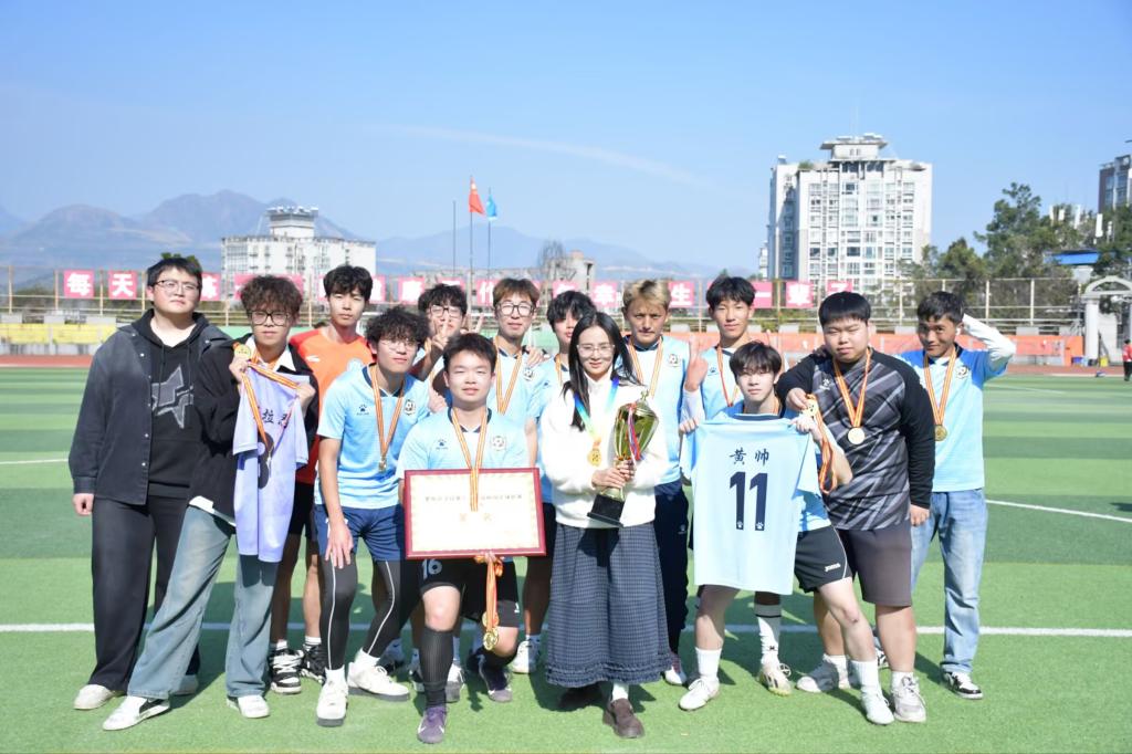 赛场上,队员们攻防兼备、奋勇争先,精准传球与凌厉射门尽显实力;场边助威声此起彼伏,凝聚成团结奋进的力量。这份荣誉,是队员们刻苦训练的回报,是教练悉心指导的成果,彰显了文、法学子的昂扬风采,为校园文化注入新活力。