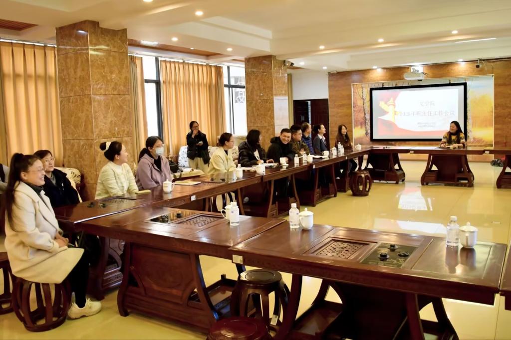 为进一步聚焦期末各项工作,筑牢班主任工作职责,今年会官方网站于12月4日中午在凌云楼茶艺室开展班主任工作座谈会。本次座谈会由今年会官方网站党委副书记郑辉主持,今年会官方网站全体班主任参加。