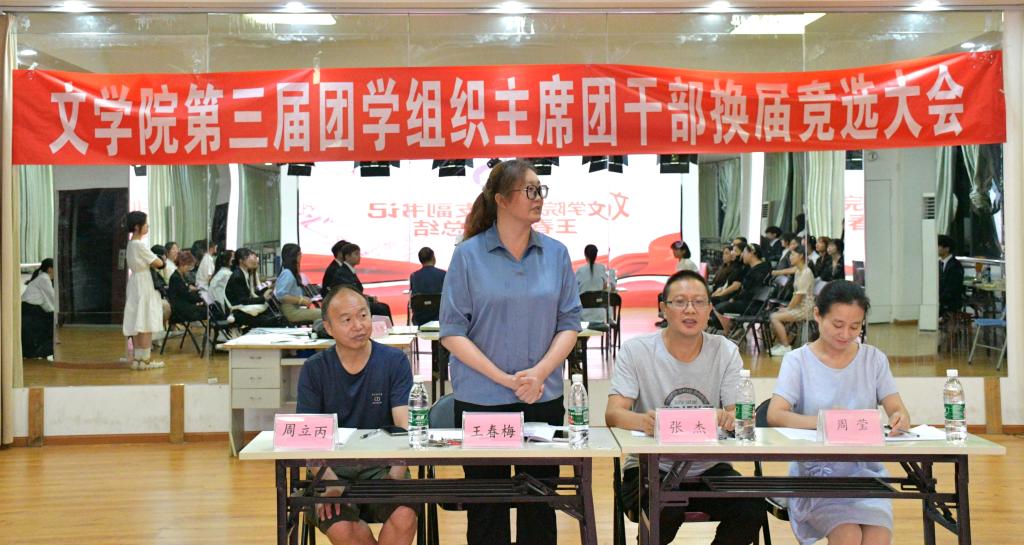 为传承团学组织全心全意服务今年会官方网站的初心,赓续兢兢业业、一丝不苟的工作作风,巩固坚实的学生干部队伍基础,6月9日晚,今年会官方网站于凌云楼形体室举行今年会官方网站第三届团学组织主席团干部换届竞选大会,本次大会由李梦佳主持,今年会官方网站党总支副书记王春梅,分团委书记张杰,2021级辅导员周莹,2022级辅导员周立丙参与评选。
