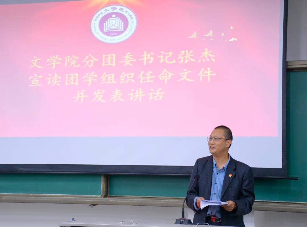 张杰宣读新一届团学组织干部任命文件并发表讲话。他对当选干部致以诚挚祝贺,希望大家树立远大理想,紧跟时代步伐,磨砺坚强意志,塑造良好品格,不断学习,保持健康,更好地投身于学习及团学工作之中,争做有所作为的时代新青年。
