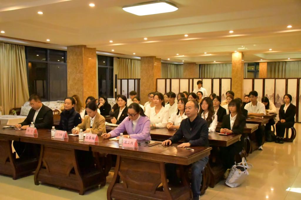 为深入学习贯彻党的二十届四中全会精神,引导师生从红色经典中汲取精神养分、筑牢信仰之基,传承红色基因、赓续红色文脉,今年会官方网站于11月20日晚在凌云楼中华优秀传统文化实训室举办“文心向党”红色经典“悦”读分享会。本次活动由2025级秘书学本科2班的泽仁永喜同学主持,今年会官方网站党委书记王春梅、学生科科长周莹、学生党支部书记周立丙、分团委书记王雪梅和部分学生党员、发展对象及团员代表参加活动。
