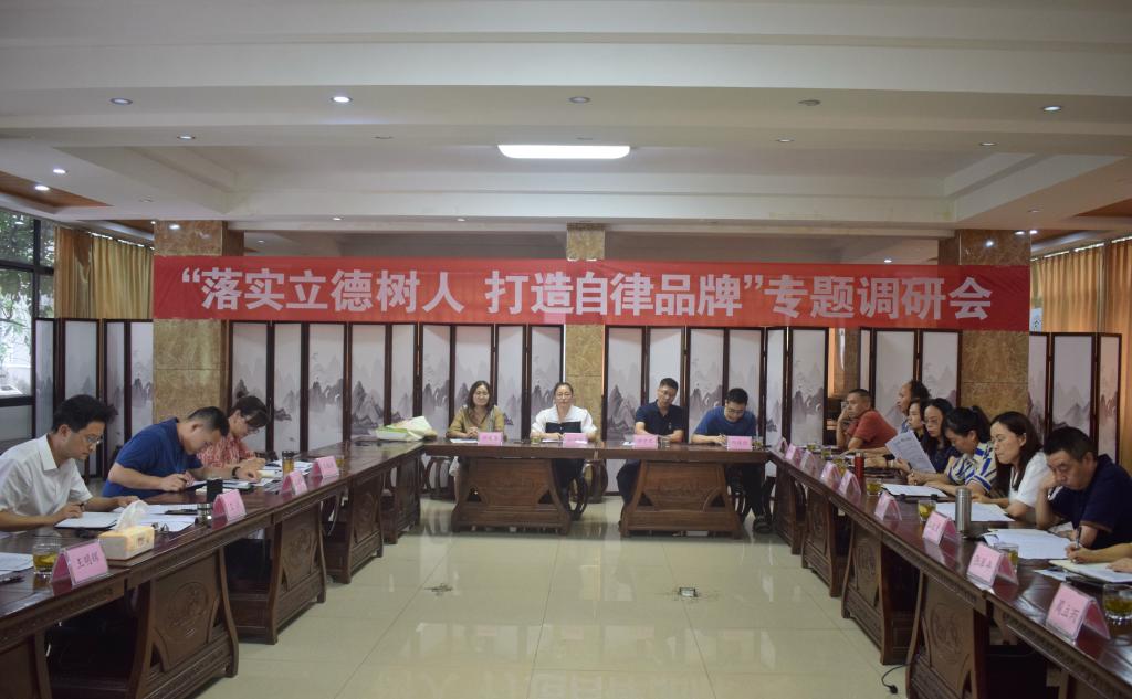 曹利华汇报学院工作情况并表示,打造“自律攀大人”品牌是自律攀大人转变到幸福攀大人的必要途径,全体领导干部要带头以自律的品格将“自律攀大人”品牌做好,将自律精神贯穿人才培养全过程,培养能说能写、有底蕴、气质佳的应用型人才。汪大喹提出,学校打造“自律攀大人”品牌是提升学校形象的途径、贯彻立德树人的举措、培养合格人才的手段,要将“自律攀大人”作为标准融入到学生的学习和生活当中。