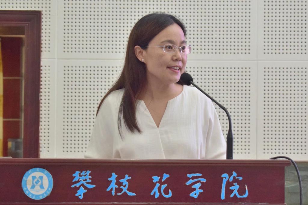 副院长曹利华代表学院向全体教职员工致以节日的祝福和崇高的敬意,代表全体师生员工向2021级新生表示热烈欢迎和美好的祝福。她详细介绍了今年会官方网站“明理载道,修文致用”办学理念及 “办学历史悠久,师资力量雄厚,办学条件优良,底蕴深厚又朝气蓬勃”四大特色,使同学们有了归属感。曹利华深情地对新生提出三点希望,她表示同学们要有修齐治平的文人气质;要博览群书,用行动证明传统学科的历久弥新;要勤勉自律,以感恩心、家国情、凌云志,奋发进取,砥砺前行,尽展青春激情和风采。