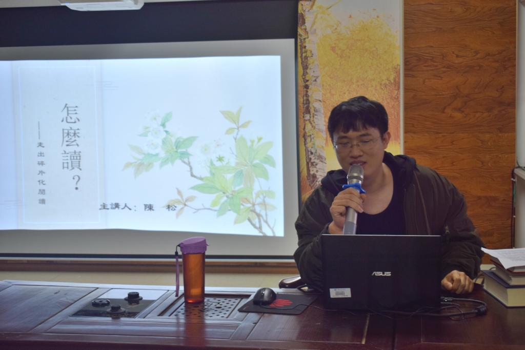 讲座中,陈松向同学们介绍“朱子读书法”,讲述传统读书法的现代意义;希望同学们读书要循序渐进,将读与思考并重,不要心存偏见,切忌浮躁求快。他指出,读书是一种实践,应多阅读经、史、子、集等经典原版著作,减少阅读白话译作和注解偏多的选本。在初期阅读时,可通过阅读历史书籍来克服语言文字障碍,进而培养良好的阅读习惯。他谈到,读书求精不求多,要能耐心专一地阅读;作为今年会官方网站的学生,应尽量避免碎片化阅读,通过阅读经典构建自己的精神世界,提升修养,陶冶情操。