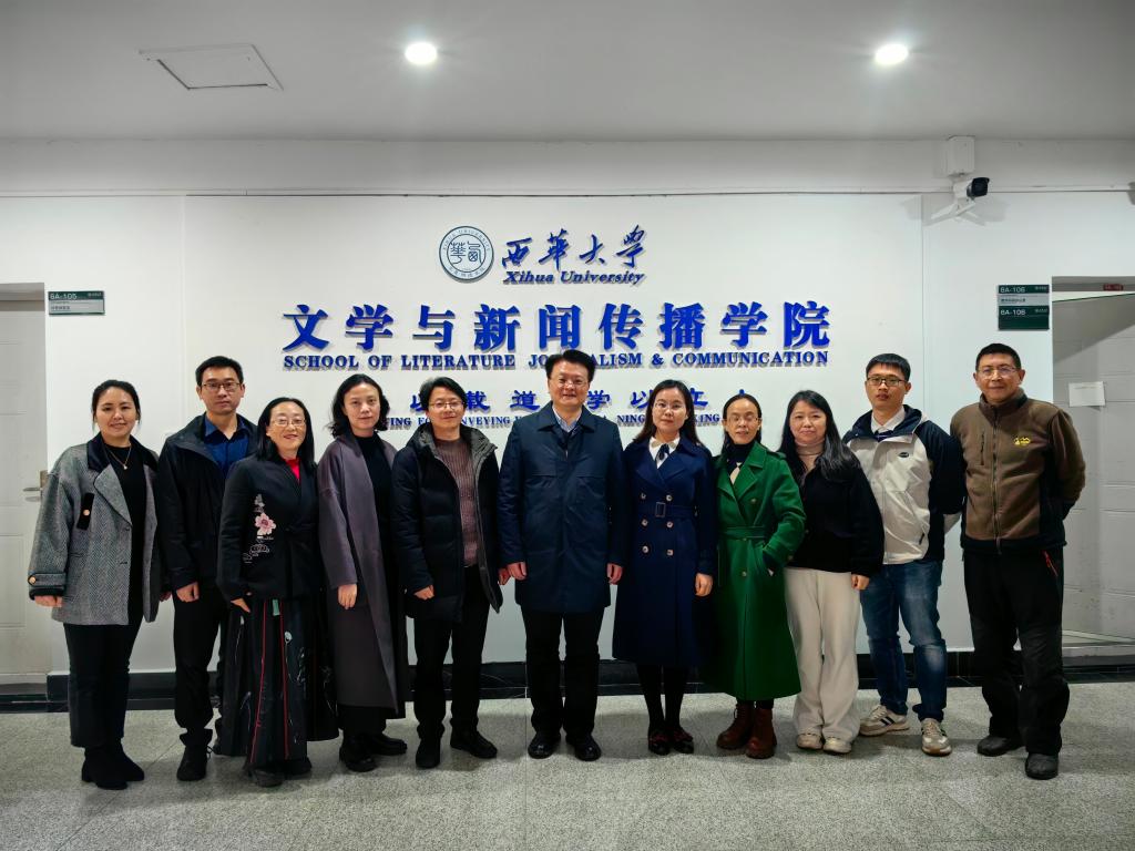 3月12日,调研团队首站抵达西华大学文学与新闻传播学院。潘殊闲院长、徐攀副书记、王学东副书记、范佳副院长等对曹院长一行热情接待。学院领导及系主任、副主任、武小军教授、李晓华教授等参加了座谈会,详细介绍了学科建设、人才培养、科学研究、就业创业等方面的成效,热情分享了国家一流课程、精品课程申建经验,以及科研平台与师资培育、学生培养相结合的先进做法,为我院提供了示范案例。会后,双方参观了西华大学融媒体中心等代表性实践实训中心。