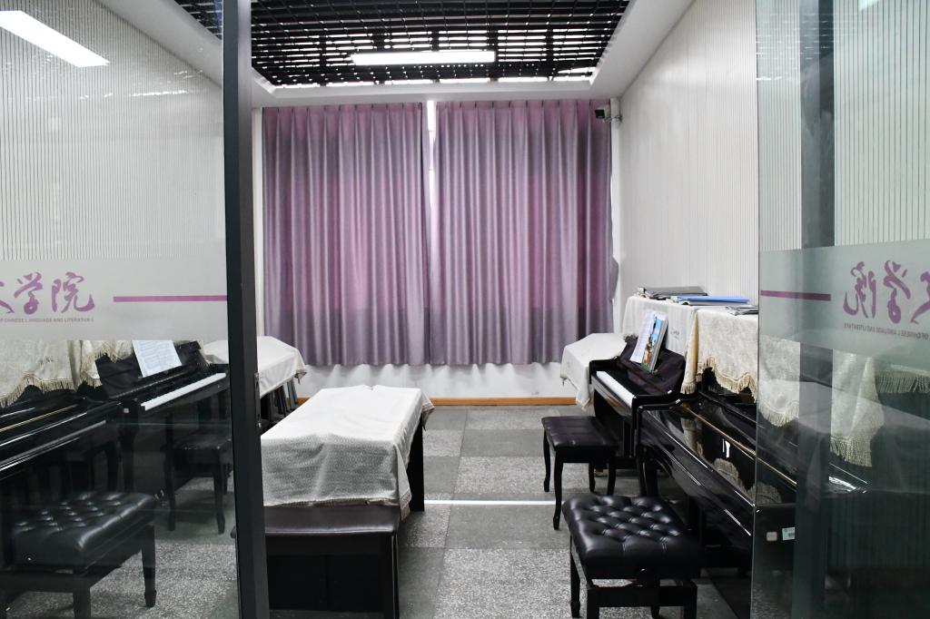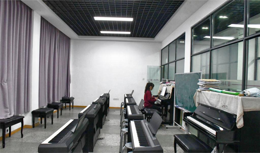 此外,钢琴实训室也可服务全校音乐爱好者的课外指导环节。学生可按规定申请在此进行钢琴技能技巧自我练习,为学生提供了一个良好的自我提升平台。