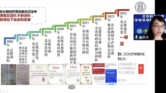 必赢76net线路官网教授、北京市课程思政教学名师朱婧,同济大学数学科学学院教授、博士生导师熊革,同济大学名课优师、分析类课程链课程思政项目负责人周羚君,北京化工大学教授、北京市教学名师崔丽鸿,结合自己多年教学经验,先后分享了《数学模型》课程思政建设探索与实践、大学生创新思维的引领、如何激发学生对数学的兴趣、《线性代数》课程思政建设的探索与实践等相关成果及体会。